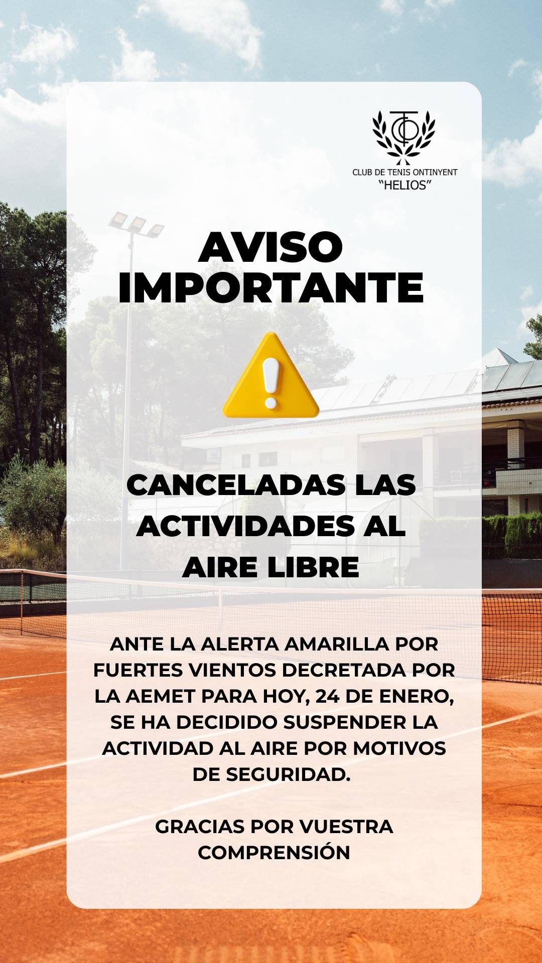 Ante la alerta amarilla por fuertes vientos decretada por la AEMET para hoy, se ha decidido suspender la actividad al aire por motivos de seguridad, dadas las rachas de viento que se están registrando en estos momentos.
